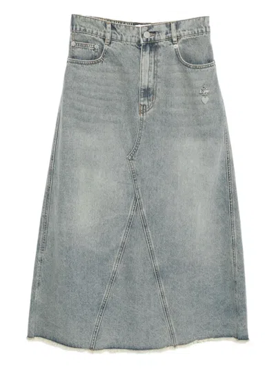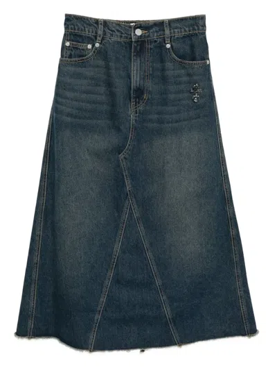 水洗效果牛仔中长半身裙