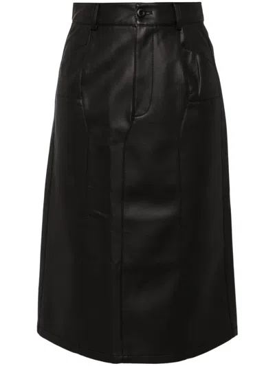 Faux Leather Midi Skirt In Black