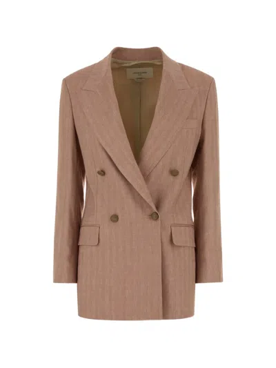 Double Breasted Jacket Long Sleeves Lapels In Nude