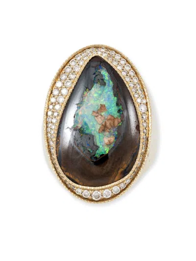 Yellow Gold, Diamond And Opal Heart Ring In Green