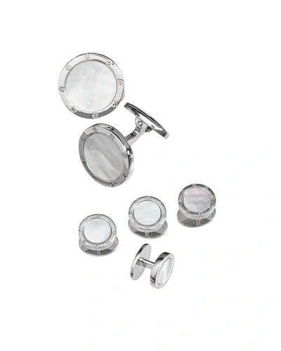 Men's Mother Of Pearl & Sterling Silver Antique Bordered Cufflinks In Metallic