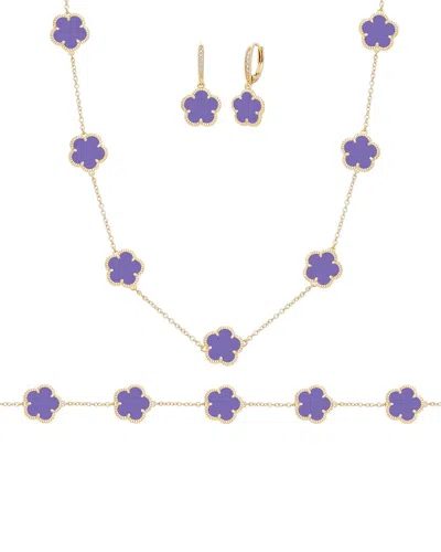 Flower 14k Plated Tiger Eye Cz Earrings & Necklace Set In Gold