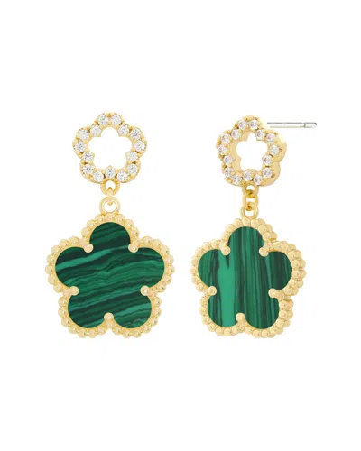 Flower 14k Plated Jade Color Agate Cz Drop Earrings