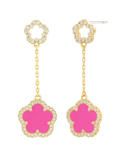 14k Plated Synthetic Fuchsia Cz Long Drop-post Earrings In Gold