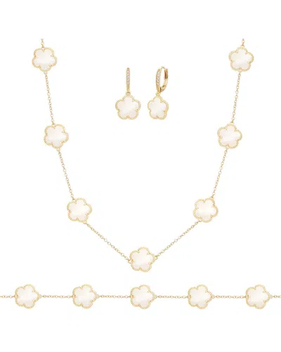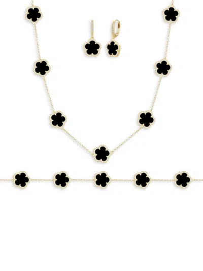 Women's Flower 3-piece 14k Goldplated & Multi-stone Station Bracelet Set In Brass