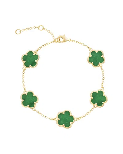 Flower 14k Plated Jade Color Agate Station Bracelet