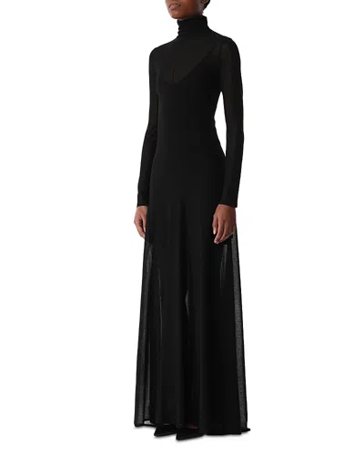 Turtleneck Sheer Knit Long-sleeve Maxi Dress In Black