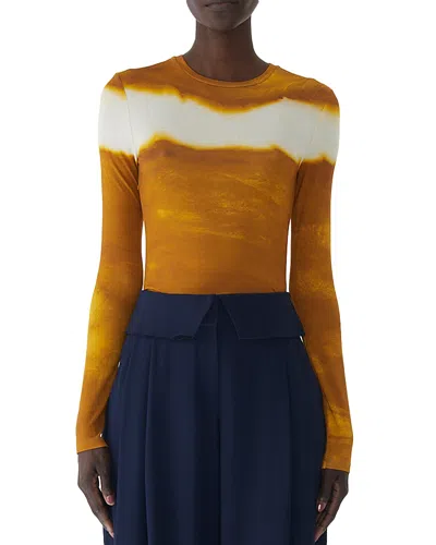 Brushstroke Print Jersey Dress In Olive Apricot Multi