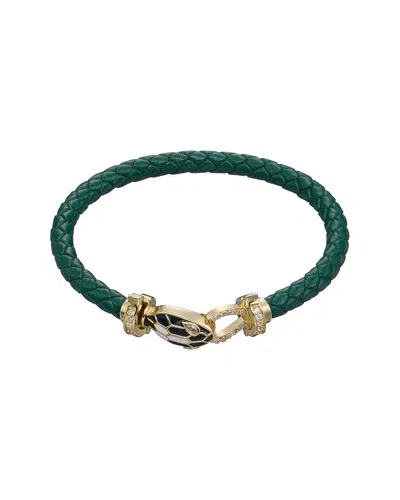 Year Of The Snake Collection Leather Cz Bracelet In Green