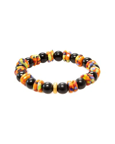 Dell Arte Silver Black Onyx Bohemian Glass Stretch Bracelet