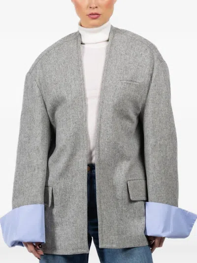 格纹对比袖口西装夹克