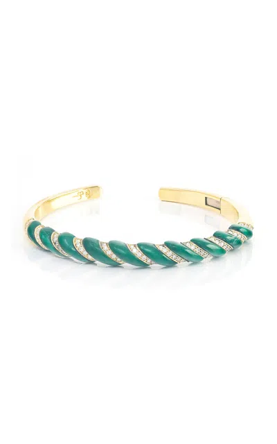 70s 18k Yellow Gold Diamond And Malachite Bangle