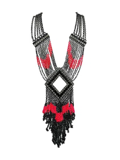 Statement Art Deco Inspired Neon & Black Tassel Collar 2000s