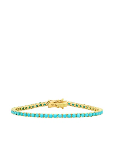 Yellow Gold, Diamond And Turquoise Four-prong Tennis Bracelet In Green