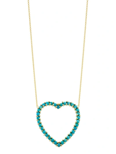 Yellow Gold, Diamond And Turquoise Open Heart Necklace