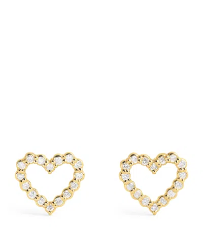 Mini Yellow Gold And Diamond Open Heart Stud Earrings