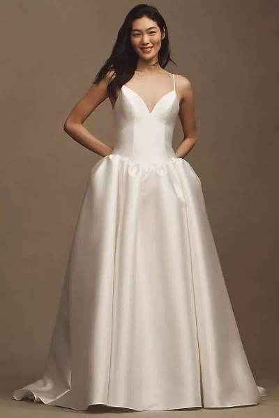 Charlotte Strapless Drop-waist Taffeta Wedding Gown In White