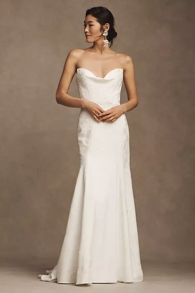 Naomi Strapless Crepe Wedding Gown In White