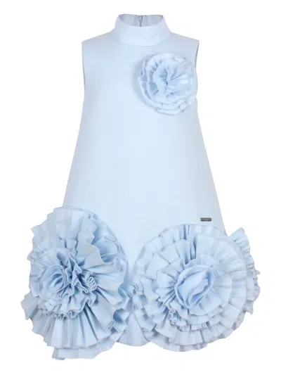 Kids' Satin Floral Appliqué Butterfly Dress In Blue
