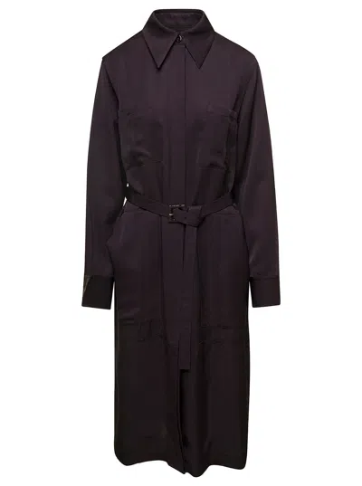 Brown Belted Coat In Black
