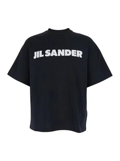 Men Blue Lightweight Cotton Jersey Logo T-shirt In Black