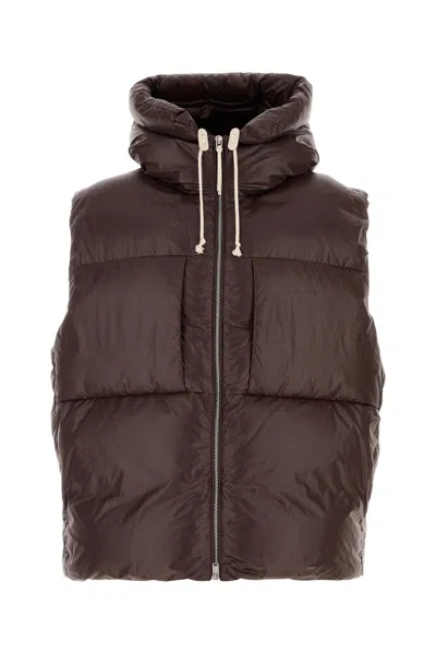 Chocolate Nylon Down Jacket In Animal Print