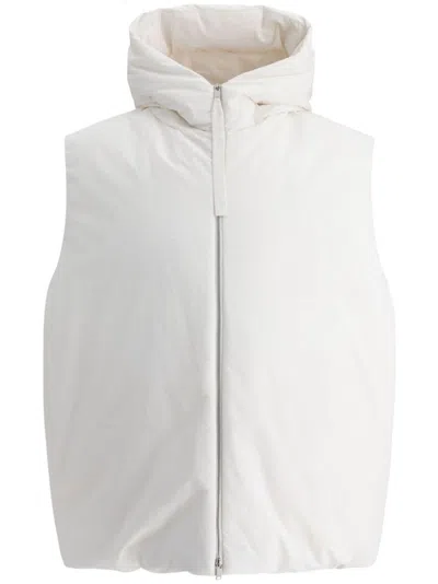 Padded Sleeveless Jacket With High Collar And Zip Closure In White