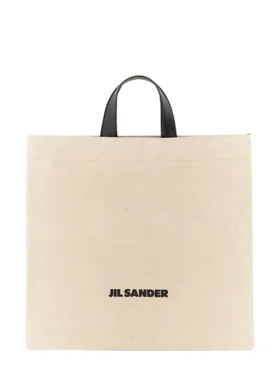 Canvas Tote Bag With Leather Flat Handles In 280
