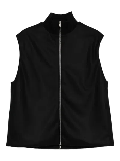 Ribbed Knit Sleeveless V-neck Vest In Black