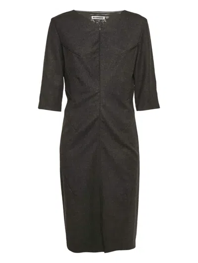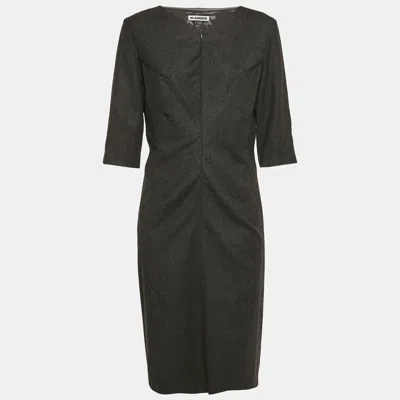 Pre-owned Grey Wool V-neck Sheath Dress L In Gray