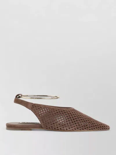 Goat Leather Slingback Sandals Pointed Toe In Brown