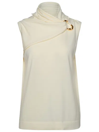 Draped Knitted Coconut Virgin Wool Tank Top In White