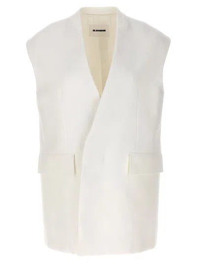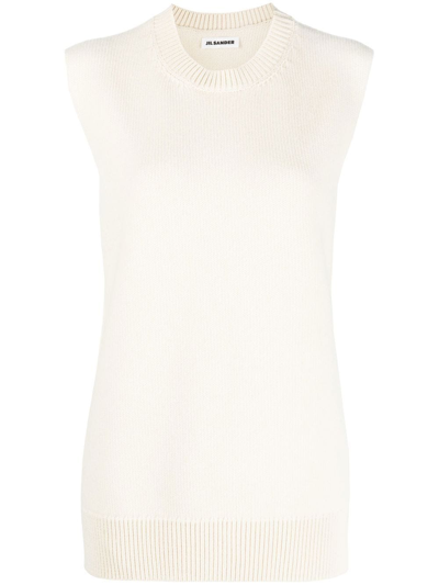 Sleeveless Wrap-back Fine Wool Rib Vest In Neutral