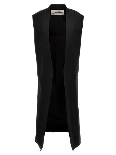 Flax Blend Buttonless Vest With Raw-cut Details In Grey