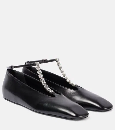 Crystal-embellished Leather Ballerina Shoes In Multi