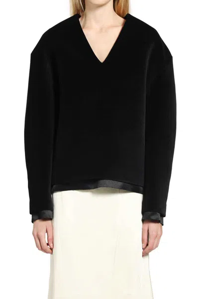 Wool Blend Blouse With High Neck And Keyhole Back In Yellow