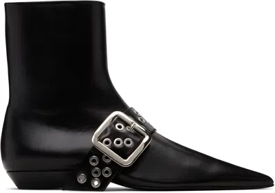 Buckled Leather Ankle Boots In Black