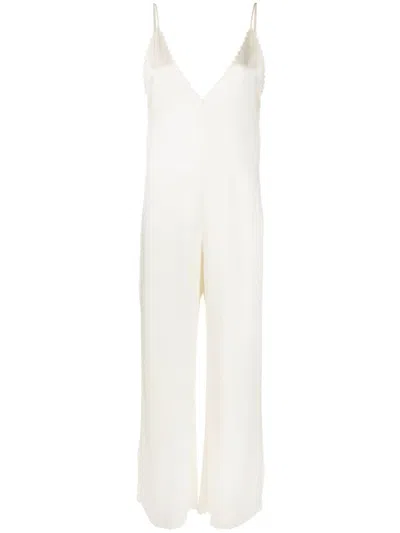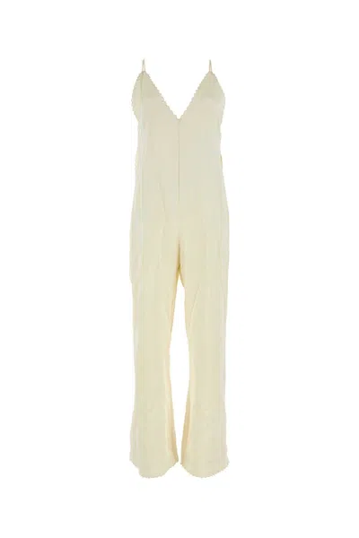 Wool Blend Jumpsuit Belted Waist In Neutral