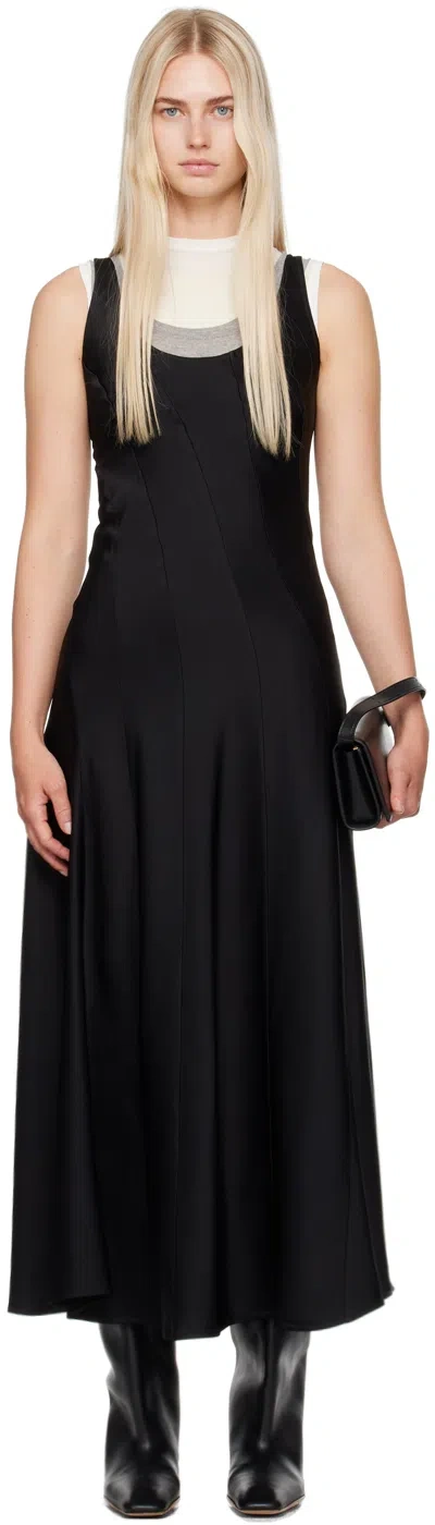 Black Lightweight Wool Gabardine Midi Dress In 001 Black