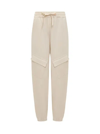 Drawstring-waist Cotton Track Pants In Beige