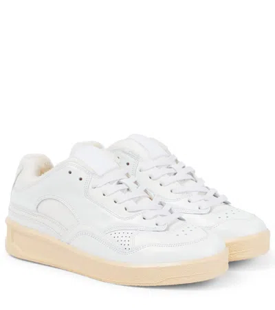 Light Beige Leather Chunky Rubber Platform Sole Sneaker In Nude