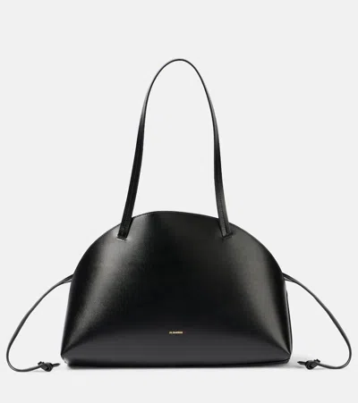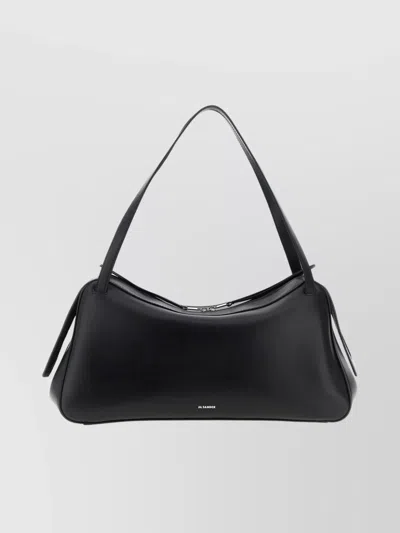 Curved Silhouette Large Shoulder Bag In Calf Leather In Black