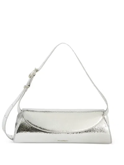Platinum Cannolo Small Ovine Leather Shoulder Bag In Silver