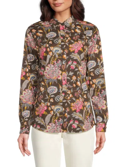 J. Mclaughlin Women's Lois Floral Stretch Cotton Shirt In Brown