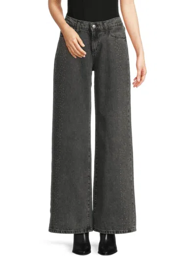 Women's Embellished Cotton Low-rise Wide-leg Jeans In Gray