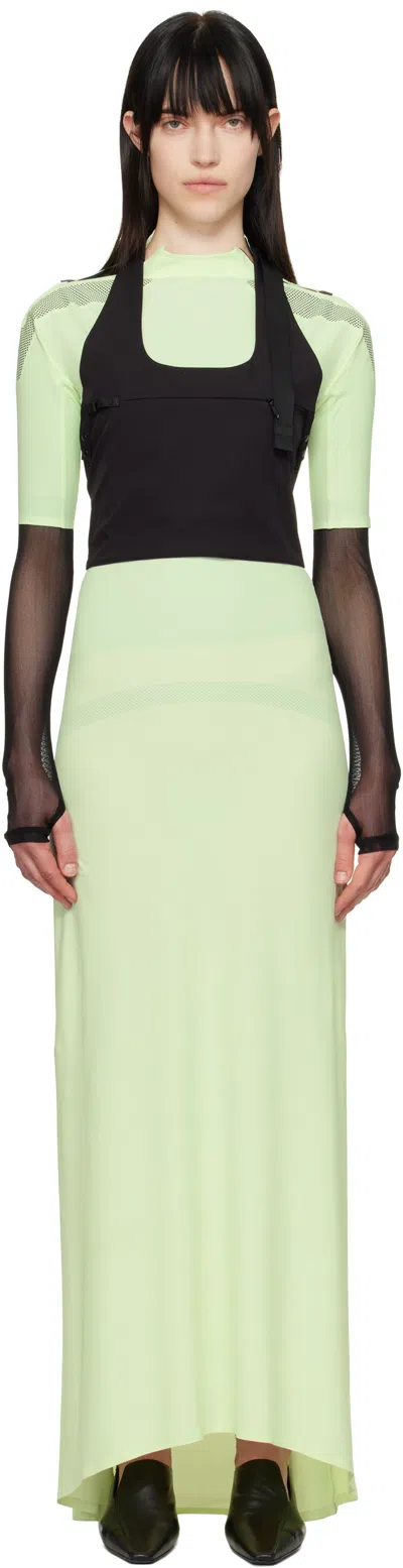 Green Lycra Silicone Dots Maxi Dress In Lime W Black Dots