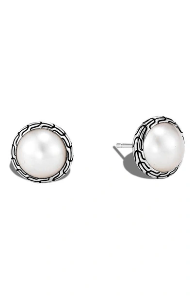 Sterling Silver Classic Chain Mabe Cultured Freshwater Pearl Stud Earrings In Metallic