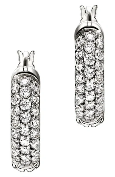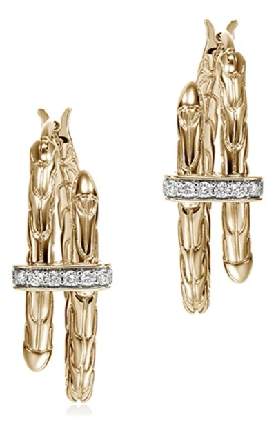 Hoop Earrings Classic Chain 18k Yellow Gold & Sterling Silver With Diamond Hoop Earrings In Silver-tone