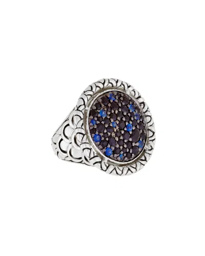 Sterling Silver Jh Essentials Blue Sapphire Pave Crossover Statement Ring In Blue/silver