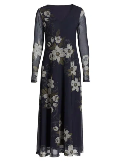 Women's Corinthe Floral Mesh V-neck Midi-dress In Blue